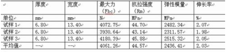 求取參數:抗拉強度(Rm)、彈性模量、伸長率