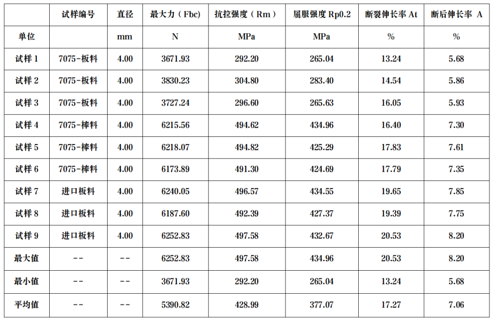 試驗報告:抗拉強度、屈服強度(RP0.2),引伸率A%