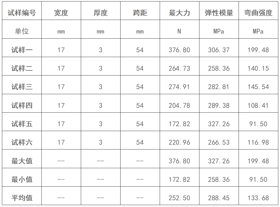 試驗報告:求最大力、抗拉強度、抗彎強度