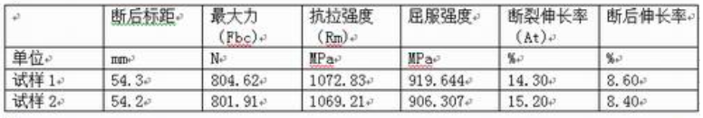 求取參數:抗拉強度(Rm)、屈服強度、斷裂伸長率(At)、斷後伸長率