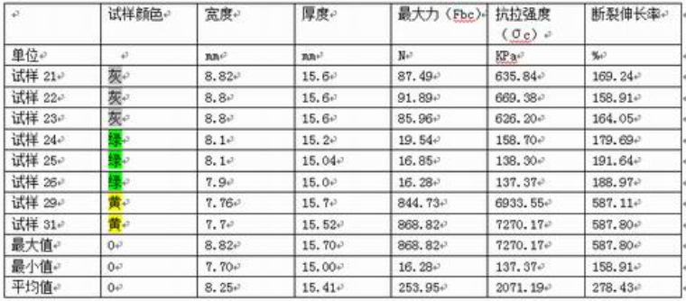 求取參數:最大力(Fbc)、抗拉強度(σc)、斷裂伸長率