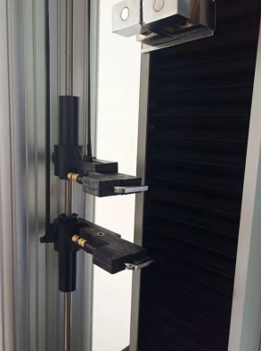 另一種安裝方式是在夾具移動杆邊豎直設置一根光柵尺和兩根可在豎直方向上移動、帶有小夾子的水平標距杆(俗稱:大變形)。這種傳感器的安裝方式和上麵所說的手動測量的使用原理是一致的,隻是將標尺改成光柵尺,將手動操作改成由試樣帶動標距杆移動。安裝在標距上的傳感器適用於金屬或標準厚度橡膠試樣的拉伸試驗,因為拉伸這些試樣時的力值較大,帶動標距杆移動的力值與之相比很小,雖然會對試樣有一定影響,但不足以影響整個試驗的成敗。但橡膠拉伸性能檢測中有一些特殊試樣就不能采取接觸式傳感器進行標距測量,例如醫用橡膠手套試樣。