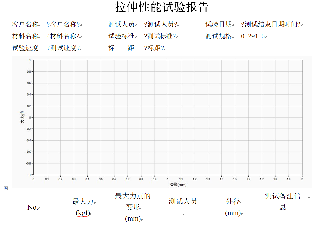 當拉力實驗機材料試驗完成之後,TIKTOK黄APP下载操作人員需要記錄當前試驗的相關信息,需要記錄的信息有試驗時間、試驗編號、試驗人員、試驗材料、試驗材料性能指標等等。TIKTOK黄APP下载報表功能便提供了進行試驗總結的接口,使得用戶可以將試驗相關信息記錄的硬盤文件當中,以便以後可以調取或者打印分析。