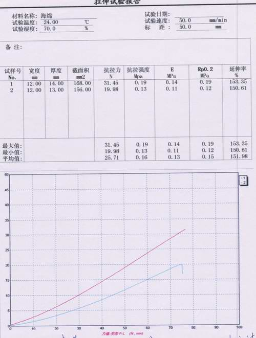 二、海棉拉伸撕裂試驗報告
