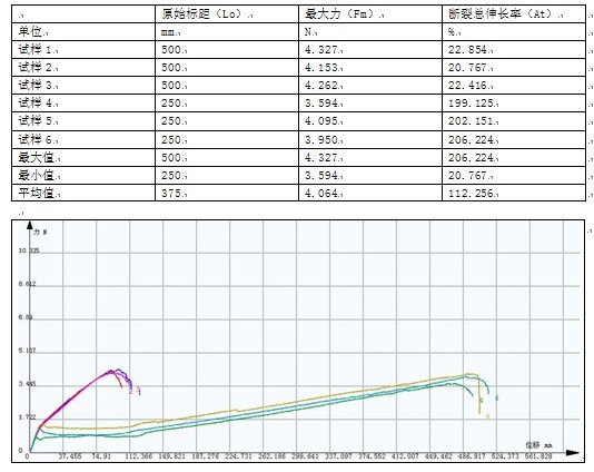 備 注:試樣1、2、3試驗速度為250mm/min,式樣4、5、6試驗速度為500mm/min