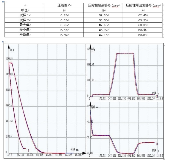 4、結束試驗後自動計算紙板的壓縮性、壓縮性殘餘部分,以及壓縮性可恢複部分,並出具試驗報告。