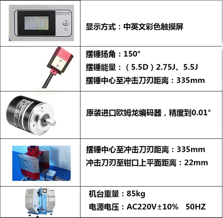 數顯懸臂梁衝擊TIKTOK黄APP下载主要用於測定塑料、增強尼龍、玻璃鋼、陶瓷、鑄石、塑料電器、絕緣材料等非金屬材料的衝擊韌性。擺錘衝擊TIKTOK黄APP下载是科研單位、大專院校、非金屬材料生產廠家進行質量檢驗的常用設備,該機是一種結構簡單,操作方便,測試精度高的一起,數顯衝擊TIKTOK黄APP下载采用高精度編碼器技術,具有精度高、穩定性好和測量範圍大等特點,數字化測量顯示衝擊強度及平均值,能量損失自動修正,打印試驗報告等功能。