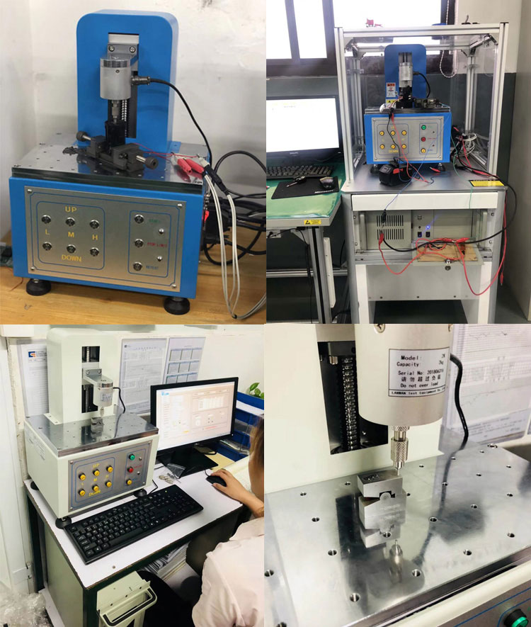 按鍵荷重位移曲線儀適用於各種RUBBER、金屬彈片、按鍵、開關、計算機鍵盤、手機按鍵等作[荷重-行程]曲線測試,同時完成下壓力、回彈力測試。采用WINDOWS中文視窗畫麵設定,操作簡單方便,且所有資料皆可儲存(試驗條件、荷重曲線圖、測試結果、檢查報表等等);本機采用高精密荷重元測量及伺服電機驅動,可以測得完全精準的[荷重-行程]測試結果,實為各類按鍵廠商研發、品檢必備之檢測儀器。