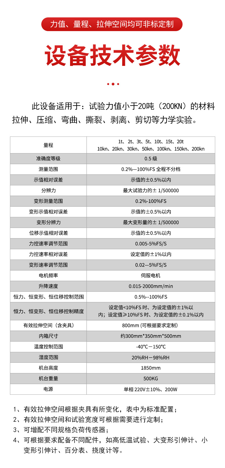 夾具:依據客戶產品要求定做拉伸、壓縮試驗夾具各一套