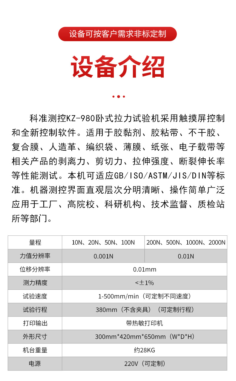 電動臥式推拉力測試機又名臥式推拉力計采用電動機台並具備無極調速、手動(點動)、自動控製切換功能,電動機台穩定性強,使用方便快速,本機采用雙導杆結構,擁有雙重支點,可通過調節旋輪調節機台高度,更方便測量,本機測試台還可兼容多款推拉力計安裝。
