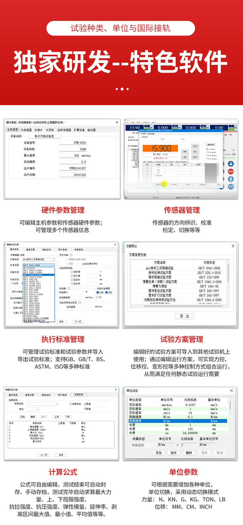 4.實現了試驗力、試樣變形、橫梁位移和試驗進程的四種閉環控製;
