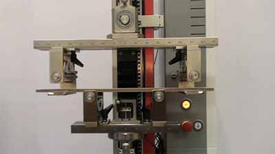5)將經過恒溫、恒濕處理的試樣夾於夾具之間,試樣一定要夾緊夾正,保證試樣在試驗過程中上下保持90°士r的垂直度。